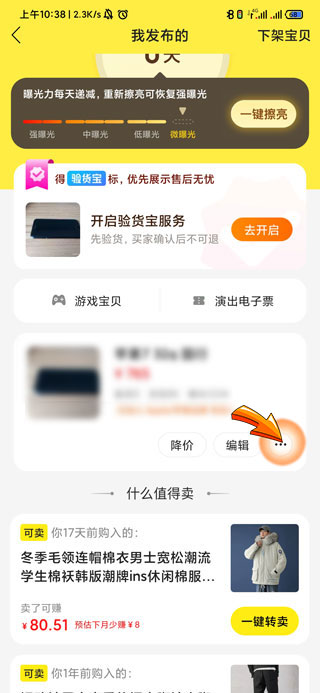 3、找到想要设置为已卖出的商品,然后点击商品右侧的三点符号。