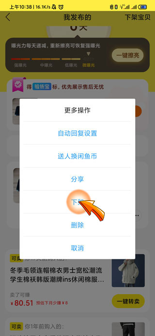 闲鱼下架商品的步骤