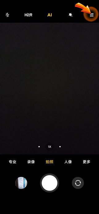 2、进入相机页面后,找到相机页面右上角三横图标,点击进入。