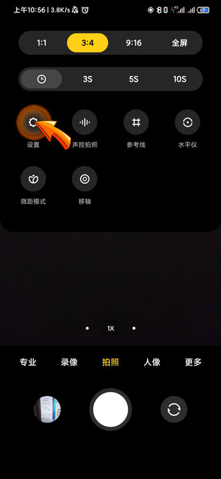 手机不能拍照了需要需要将恢复相机设置,先将手机相机打开,打开相机后点击右上角三横图标,进入后找到并点击“齿轮设置”图标,将出现的页面滑到最底部,并点击恢复默认设置即可。
