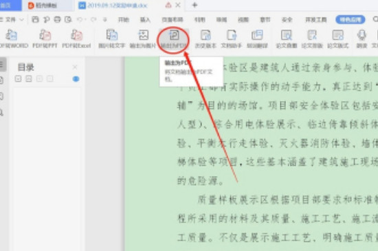 2、进入wps文档界面后,点击界面上方选项卡中的“特色应用”,之后点击特色应用下面的“输出为pdf”选项。