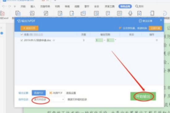 3、设置文件输出目录后,点击“开始输出”选项,就可以将wps文件转换为pdf格式。之后返回桌面并双击输出的pdf文件,就可以将pdf文件打开。