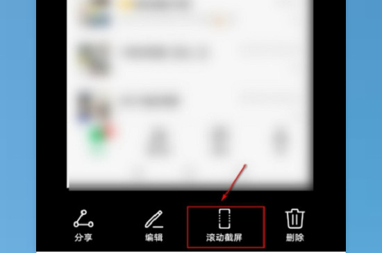 4、生成图片后,页面会出现几个选项,点击滚动截屏,然后点击滚动区域,轻触屏幕,即可完成长截屏。