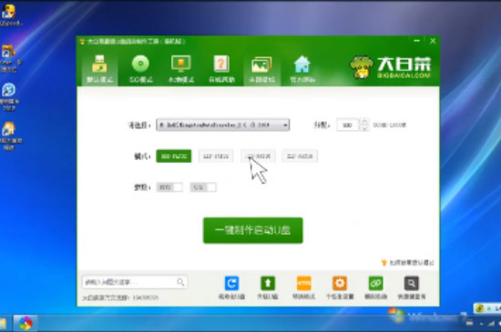 下载安装大白菜超级u盘启动制作工具并运行,选择制作的U盘盘符,点击“一键制作启动U盘”。