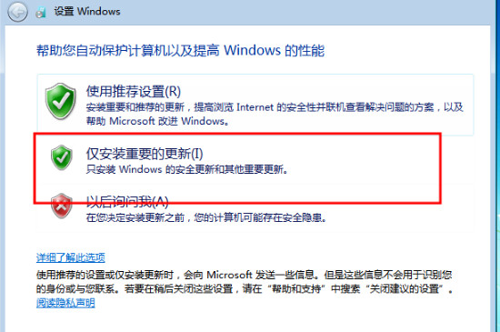 选择第一个仅安装重要的更新,输入系统密码和问题提示,选择时区,默认即可,然后等待一会,就安装成功了。