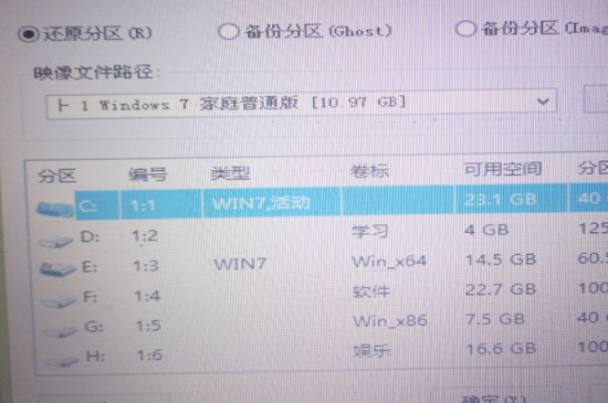 进入大白菜模拟系统中,弹出如图所示的对话框,选择C盘然后选择确定即可。