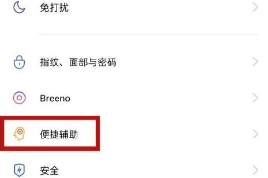 2、进入oppo手机的设置界面后,再点击界面中的“便捷辅助”选项 ,之后点击便捷辅助界面中的“导航键”选项。