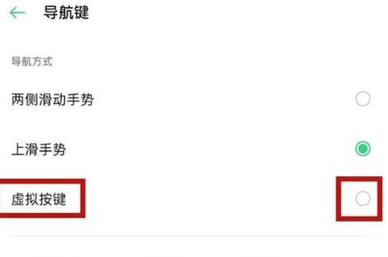 3、最后选择导航键界面中的“虚拟按键”,屏幕下方就会出现三个虚拟按键,三个虚拟按键的功能分别是“返回上一级”、“返回桌面”、“任务管理器”。