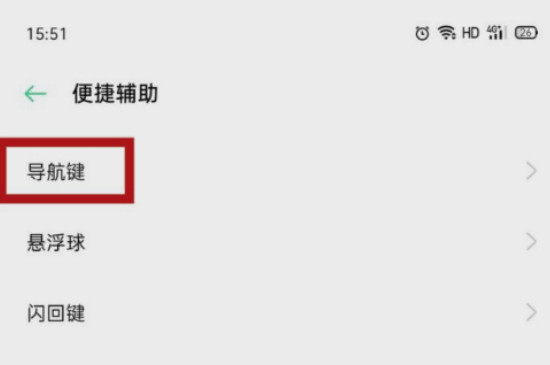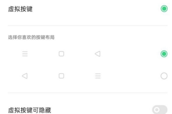 2、进入导航键设置界面后,打开虚拟导航键按钮,之后手机界面下方就会出现三个虚拟导航键,其中圆形图标按钮为返回桌面,三角形图标按钮为返回上一级。