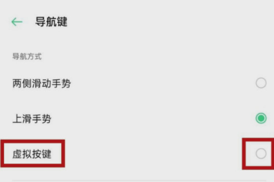 3、进入导航键设置界面后,可以将返回键设置成“两侧滑动手势”、“上划手势”、“虚拟按键”任意一种。
