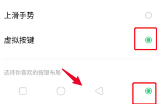 3、点击导航键设置界面中的“虚拟按键”选项,之后按照个人习惯设置三键的布局,布局设置完成后,手机页面下方就会出现虚拟按键。