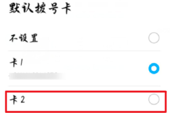 4、点击卡2就可以设置成拨号为卡2了,设置完成后就可以直接使用卡2进行打电话了。