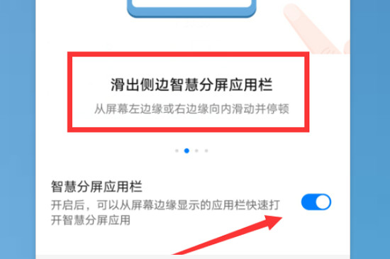 4、打开设置,点击辅助功能,开启智慧分屏,按照提示信息操作,打开智慧分屏应用栏即可。