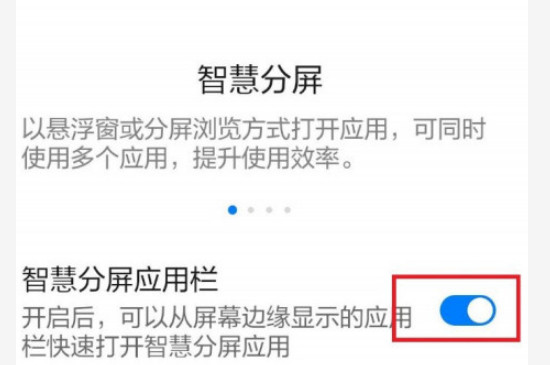2、进入页面后,选择打开智慧分屏选项,点击开启智慧分屏的开关即可。
