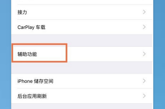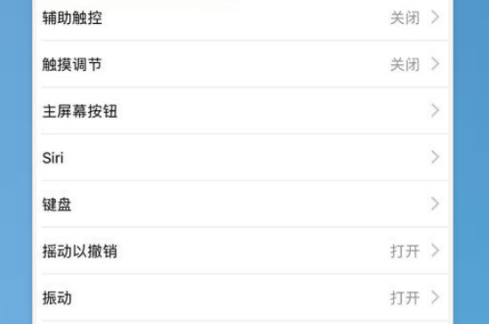 3、页面下滑,找到辅助触控,一般是呈关闭状态,点击开启。