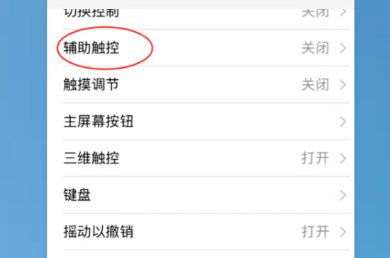 3、在辅助功能的页面找到辅助触控,一般是关闭状态,点击开启。
