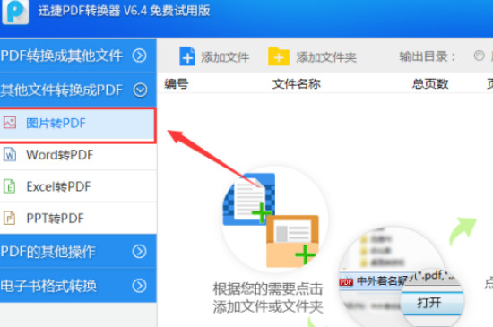 将下载好的转换器打开,在界面中找到“其他转pdf”的选项后打开。然后选择“图片转pdf”这个功能,将“其他转pdf中的图片转pdf功能”,点击打开。