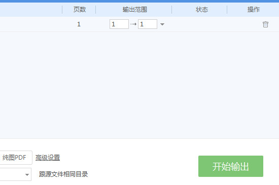 3、接着会弹出PDF的设置界面,在界面上可以看到等待转换的文档,选择好保存位置,点击开始输出。