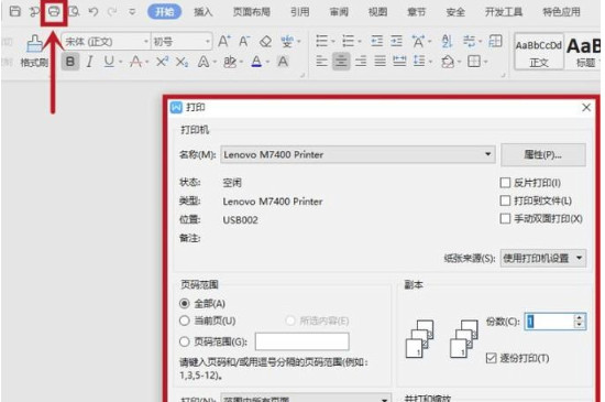 3、添加打印机设备后,打开电脑上需要打印的文档,再按快捷键“Ctrl+O”调出打印设置,完成打印设置后,点击“打印”,打印机就会将文档打印出来。