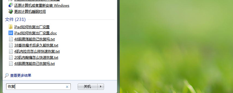 1、想要将winxp还原系统可以先打开电脑进入桌面,鼠标左键单击桌面右下角“开始”选项栏后,在搜索栏内输入“恢复”并按回车键。