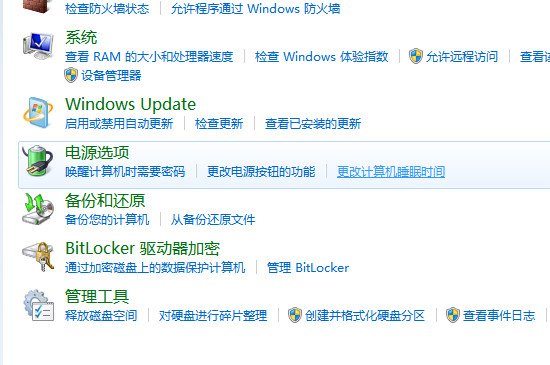 2、找到电源选项,点击更改计算机睡眠时间,可以设置电源的电池情况。