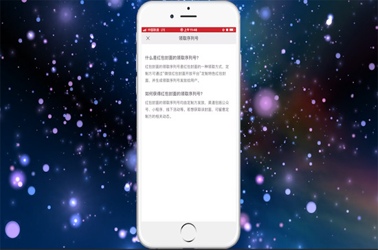 4、红包封面的序列号是红包封面的一种领取方式,均由定制方发放,渠道包括公众号、小程序、线下活动等。