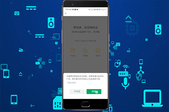 2、接着点击零钱通,勾选已阅读条款,再点击免费开通。