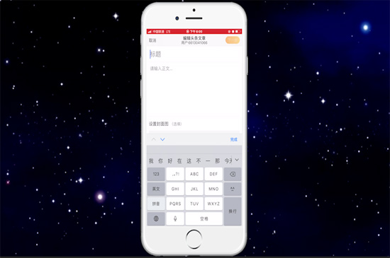 4、点击“你在哪里”可以分享自己所在的地理位置,还可以在屏幕下方选择插入图片、表情等,或者@好友,编辑完成后点击右上方的发送,微博发送完成。