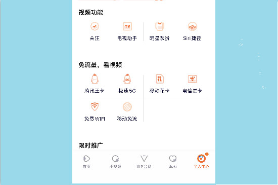 2、点击腾讯视频播放界面右下角的“个人中心”选项,进入个人中心界面后,下滑界面就可以看到“电视助手”功能。