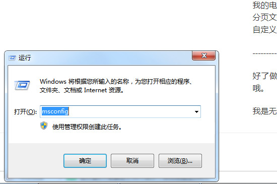 2、win10电脑很卡也可以用同时按键盘上的 “windows”键和“R”键,打开电脑程序运行搜索栏目后,在搜索栏内输入“msconfig”,再把不重要的软件取消开启运行即可。