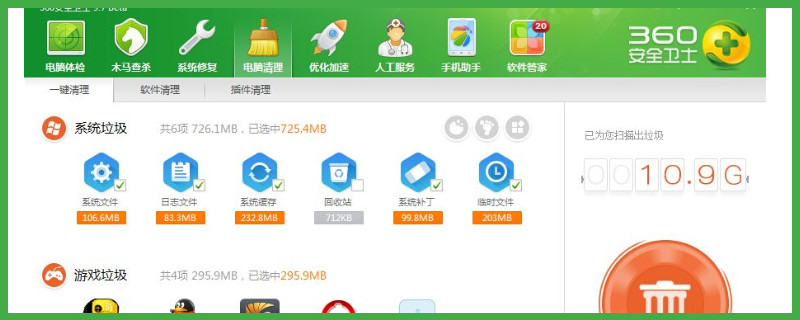 1、win10电脑出现卡顿不流畅的情况时,可能是因为运行的软件太多造成的,这种情况可以使用360安全卫士或腾讯电脑管家等管理软件清除电脑正在运行的软件,同时将垃圾文件都删除。