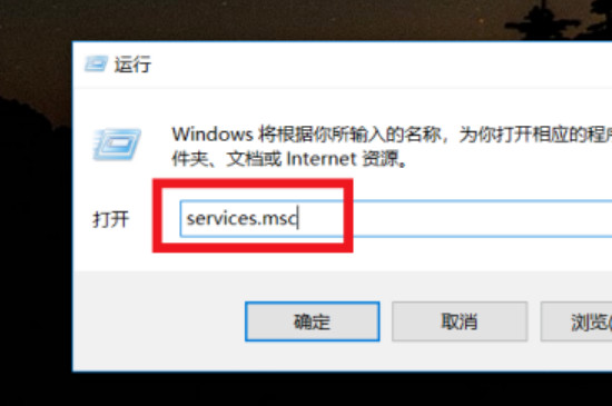 2、win10电脑无法连接网络还可以尝试同时按“windows”键和“R”键打开运行搜索界面,在搜索栏输入“services.msc”后点击确认。