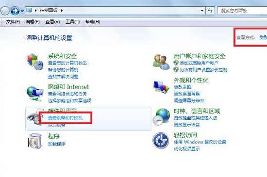 2、进入控制面板页面后,再点击“硬件和声音”选项中的“查看设备和打印机”,这时可以看到蓝牙耳机的图标,之后鼠标左键双击打开蓝牙耳机图标。