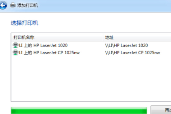 3、电脑自动搜索到局域网内可连接的共享打印机后,若显示有想要连接的打印机,就选择相应的共享打印机信号,最后点击下一步完成连接就可以使用。