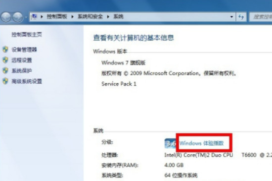2、此外想要查看电脑的型号还可以鼠标右键单机桌面上的“计算机”选项,之后再选择计算机右侧选项栏内的“属性”栏目,再点击属性界面内的“windows体验指数”。
