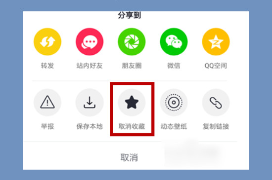 如果不想收藏了,可以点击视频之后选择下方的分享选项。这时会有黑色的星星图案下方带着取消收藏的字样出现,点击取消收藏的选项后就可以取消了,在这个操作框中还可以选择将收藏的视频分享和保存到本地。