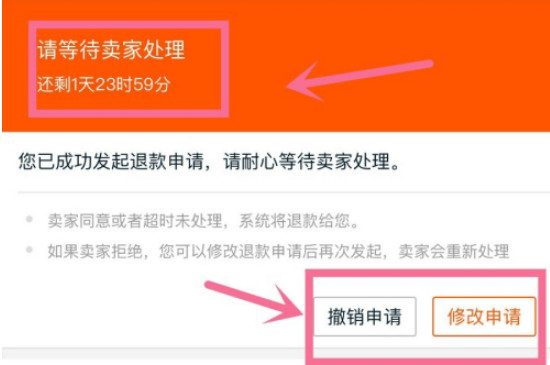 3、最后可以看到已发起退款的申请界面,如何卖家拒绝,可以先修改退款申请后再次发起。