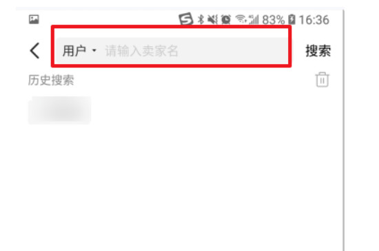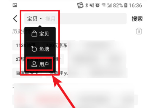 2、在搜索框左侧,将宝贝对应的向下的箭头向下拉,在弹出的提示框选择用户的选项。