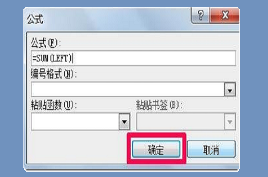2、公式中会出现SUM(LEFT)的字样,这就是求和的公式,点击确定后单元格就会自动求和。除了求和公式,公式中还有平方、相求乘积的公式可以选择。