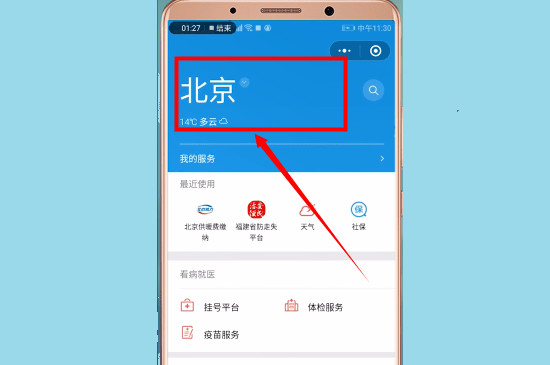 进入“城市服务”之后,在屏幕的最上方会显示现在的定位,点击现在的定位城市,之后便可以更改城市和定位。选择好要缴费的城市,确认所在要缴费的城市是否开通此项功能。