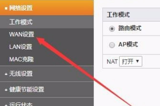 在展开的网络设置选项中找到并点击“WAN设置”。
