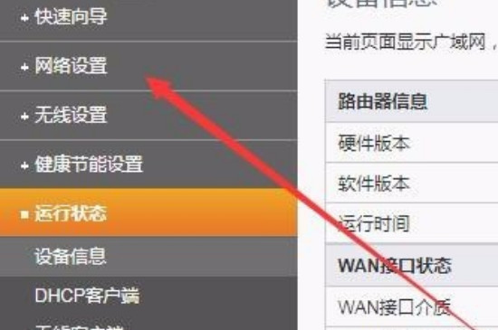 登录后出现的是路由器的设置页面,点击左侧的“网络设置“选项。