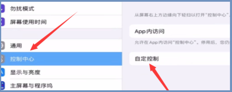 打开ipad主页之后点击设置,进入ipad设置中心之后选择“控制中心”,在右边弹出的选框里面找到“自定控制”选项。