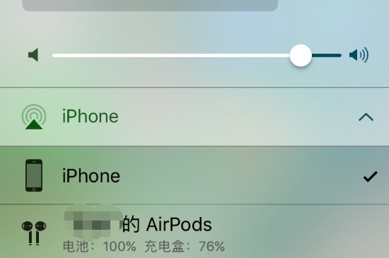 3、可以通过控制中心下方音频设备,直接查看airpods的电量。如果airpods已经戴在了耳朵上,电池盒也关闭了的话,只能在iPhone上查看电量。