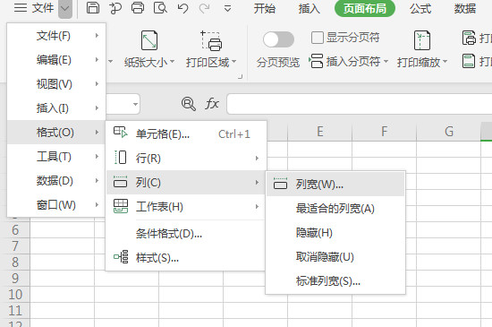 4、操作同上,找到“格式”,点击“列”并选择“列宽”,输入设置的列宽即可。