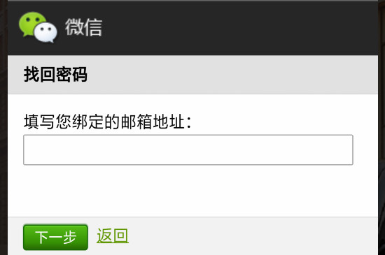 同用QQ登录方法类似,点击“忘记密码”点击第三种方法,通过绑定微信的邮箱找回密码。填入绑定的邮箱账号,登录邮箱接收验证码,输入验证码之后重新设置密码,利用新密码登录微信即可。
