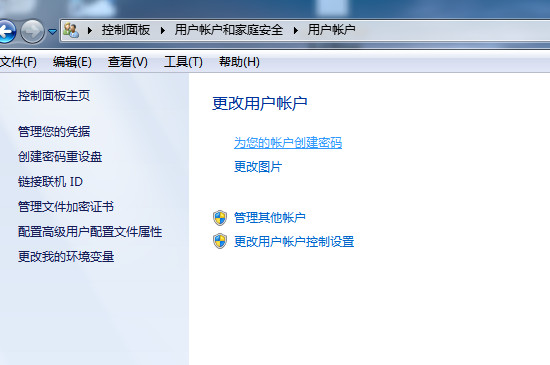 3、点击“用户账户”,接着点击“为您的账户创建密码”。