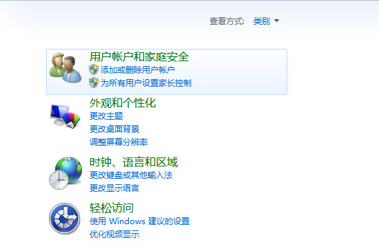 2、打开后,点击“用户账户和家庭安全”。