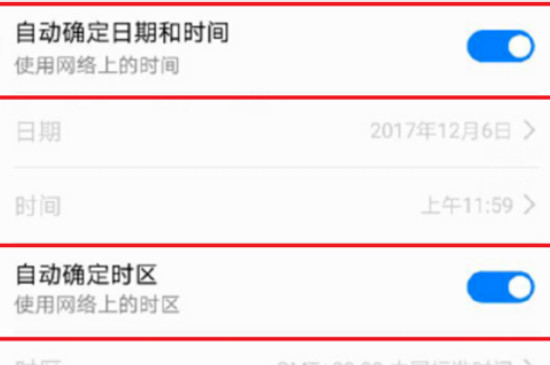 3、点击“时间和日期”后会进入时间调整的界面,找到“自动确定日期和时间”的选项,打开按钮会自动更新时间。下面的“自动确定时区”可以调整其到其他国家的时间。