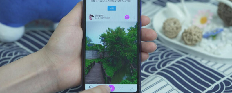 1、首先下载一个Picsart软件,接下来打开软件进入新的界面。在界面上找到一个加号点击,之后在界面中找到“添加照片”选项进行添加照片。